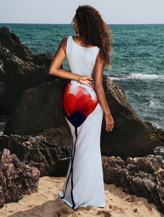 Gizelle Floral Off Shoulder Cowl Dress (White/Red)