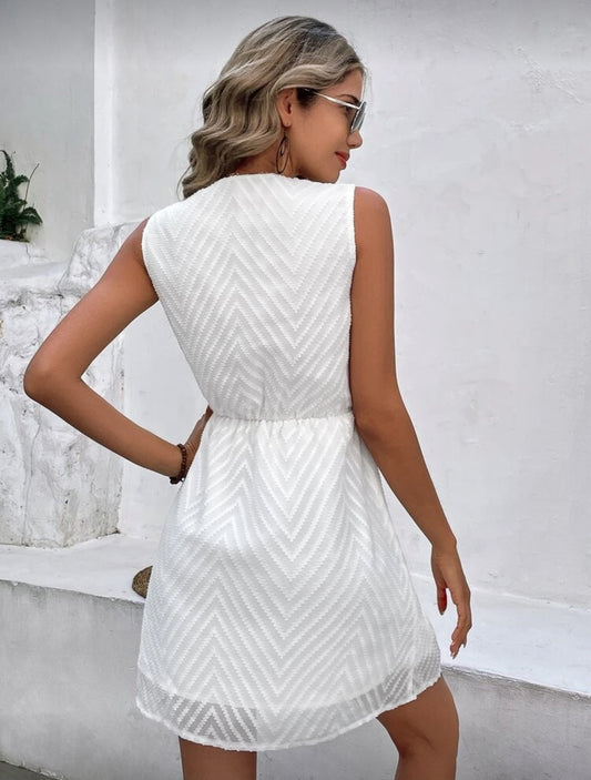 Frenchy Contrast Swiss Dot Chiffon Dress (White)