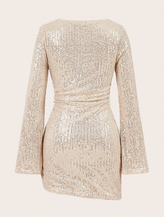 Ama Long Sleeves Sequin Dress (Rose Gold)