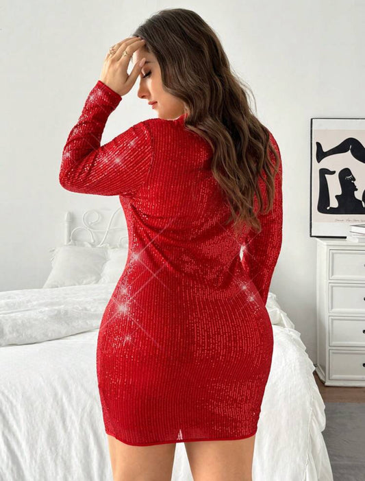 Cataluna Square Neck Plus Sequin Dress (Red)