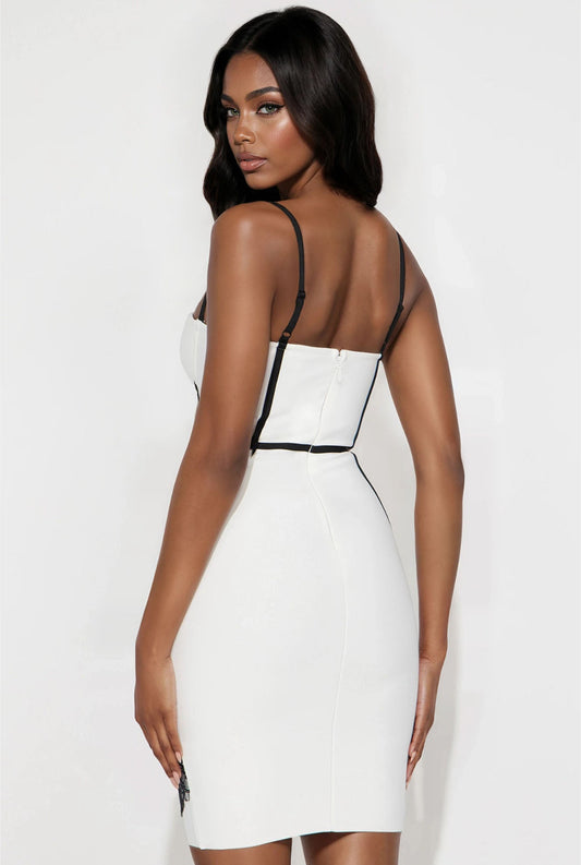 Khloe Lace Bandage Strap Midi Mesh Dress (Black/ White)
