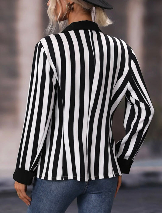 Classy Work Strips Button Blazer (Black/White)