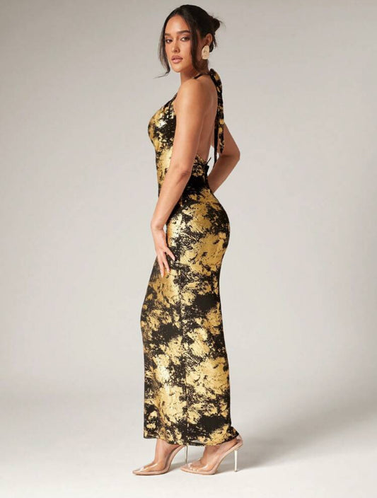 Betz Fav Low Neck Foil Dress (Black/ Gold)