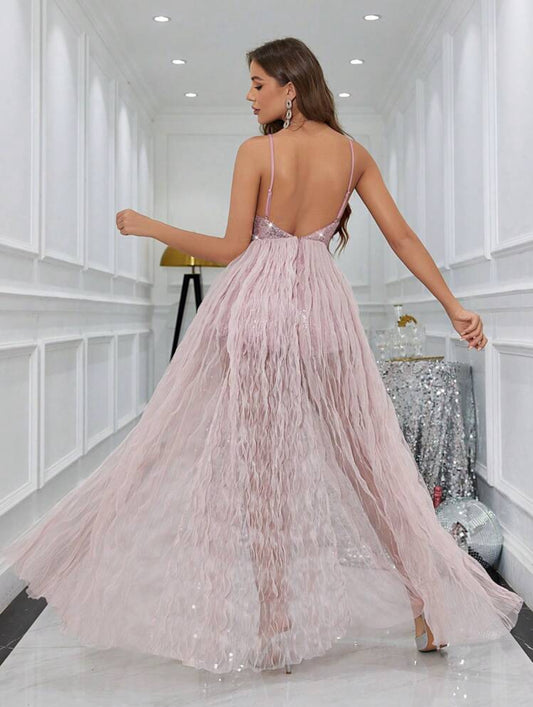 Bella Rosa Sequin Body High Split Dress (Dusty Rose)