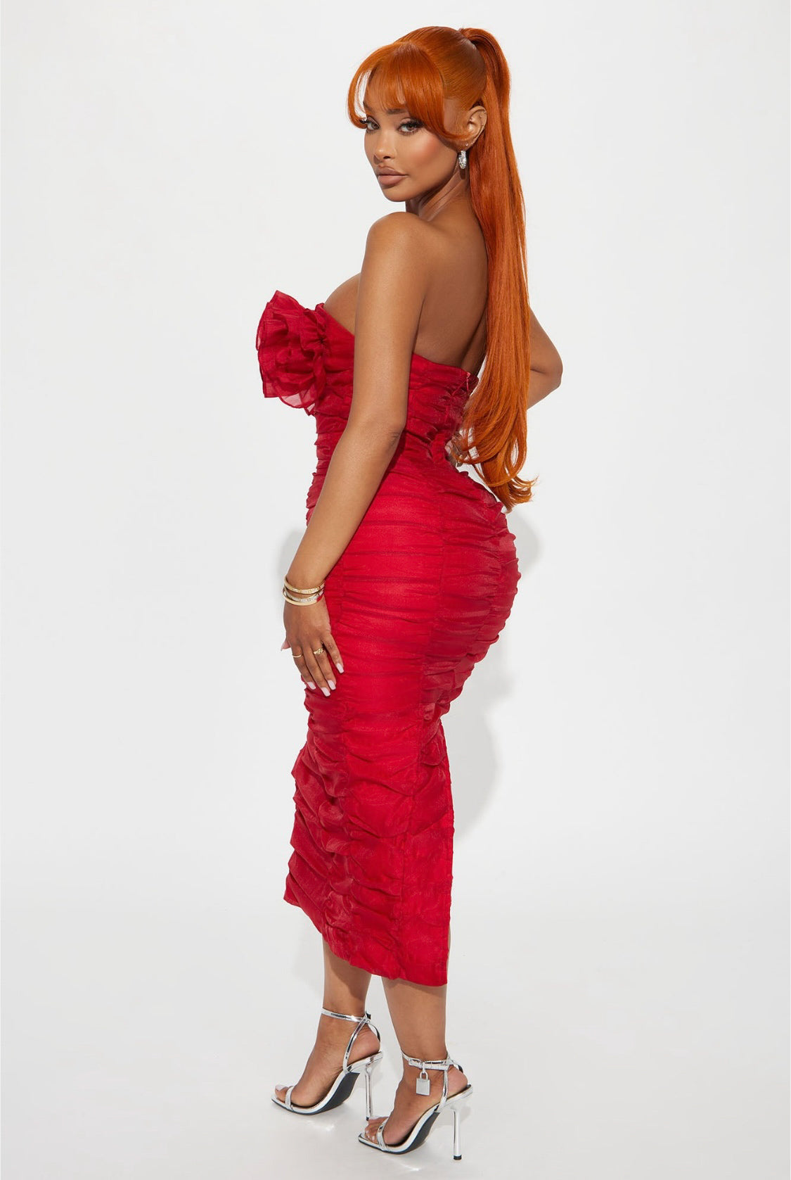 Lola 3D Flowers Bustier Organza Midi Dress (Red)
